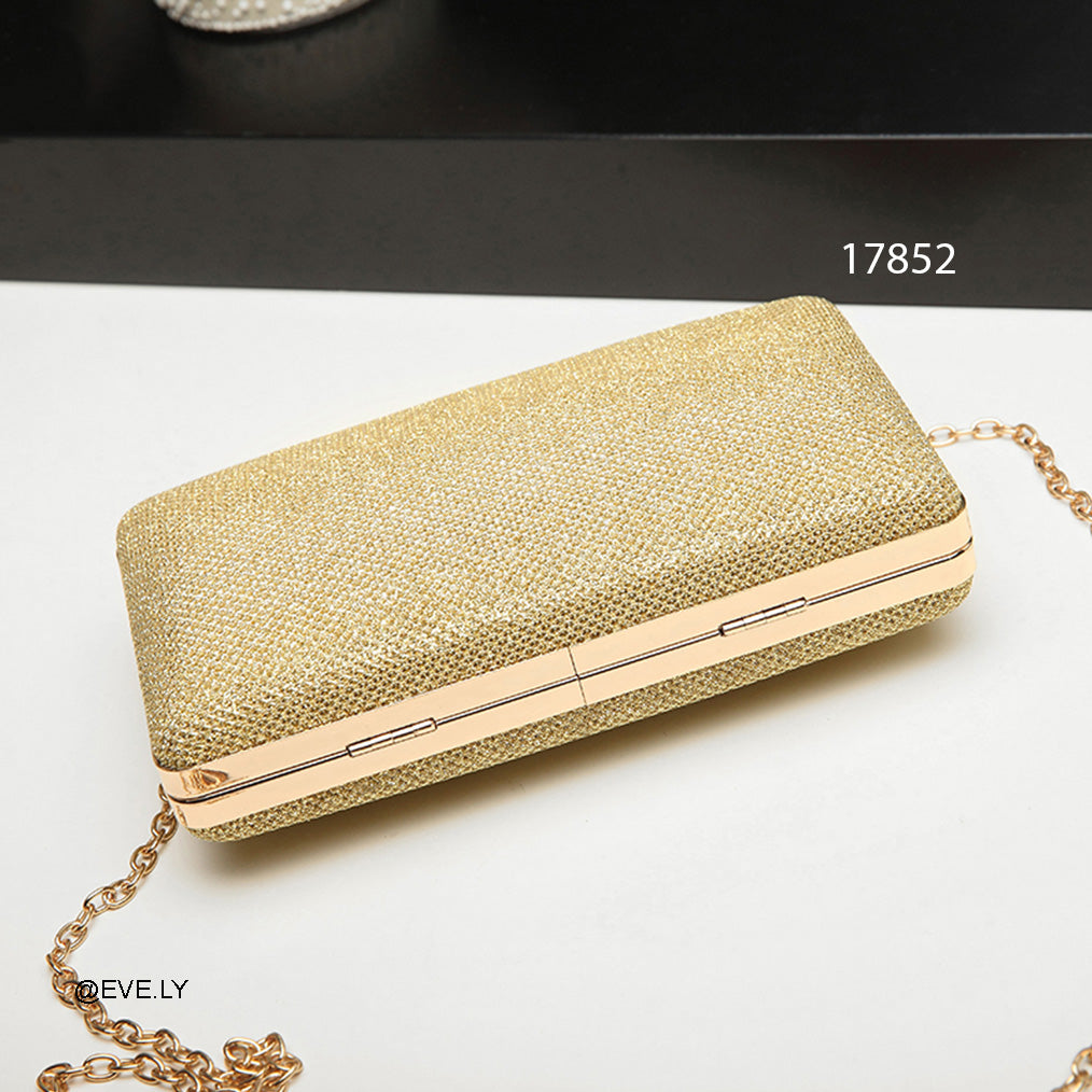 • التصميم: حقيبة سهرة كلاسيكية (Clutch) ذات إطار معدني صلب وشكل مستطيل يمنحكِ مظهراً منظماً وأنيقاً.