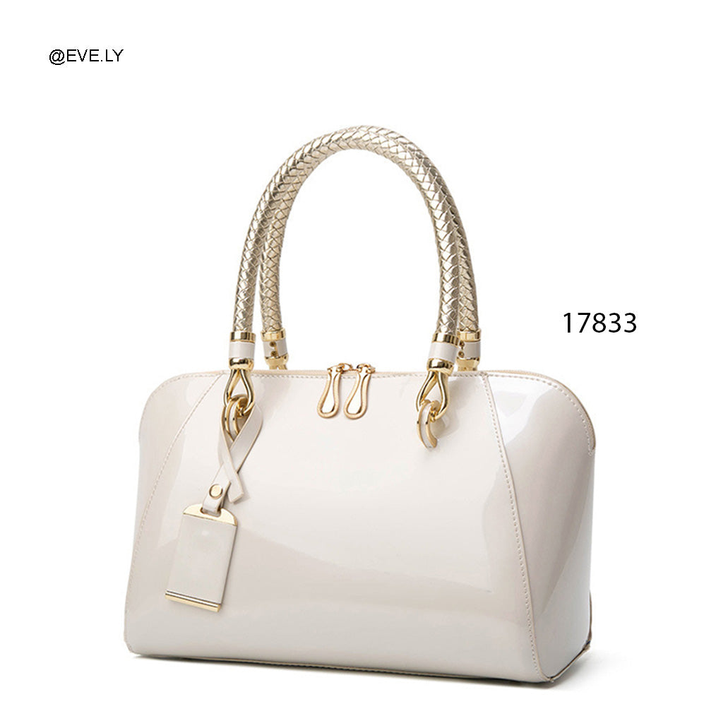 • إكسسوار جلدي: تأتي مع الحقيبة تعليقة جلدية (ميدالية) بنفس اللون اللامع، مثبتة بحلقة ذهبية على المقبض.