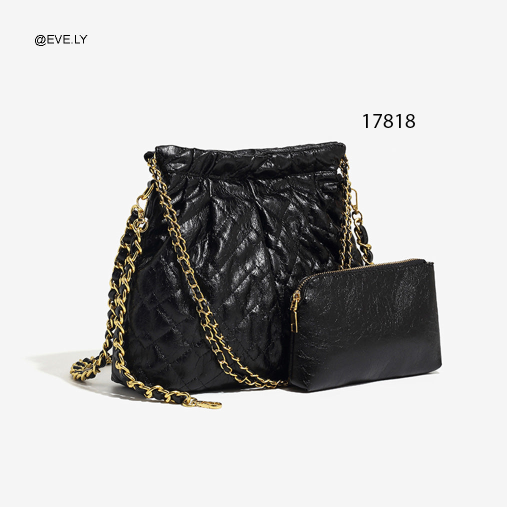 سلاسل ذهبية خفيفة: الحقيبة مزودة بحمالات كتف مزدوجة من السلاسل الذهبية المتداخلة مع الجلد، مما يعطيها طابعاً عصرياً.