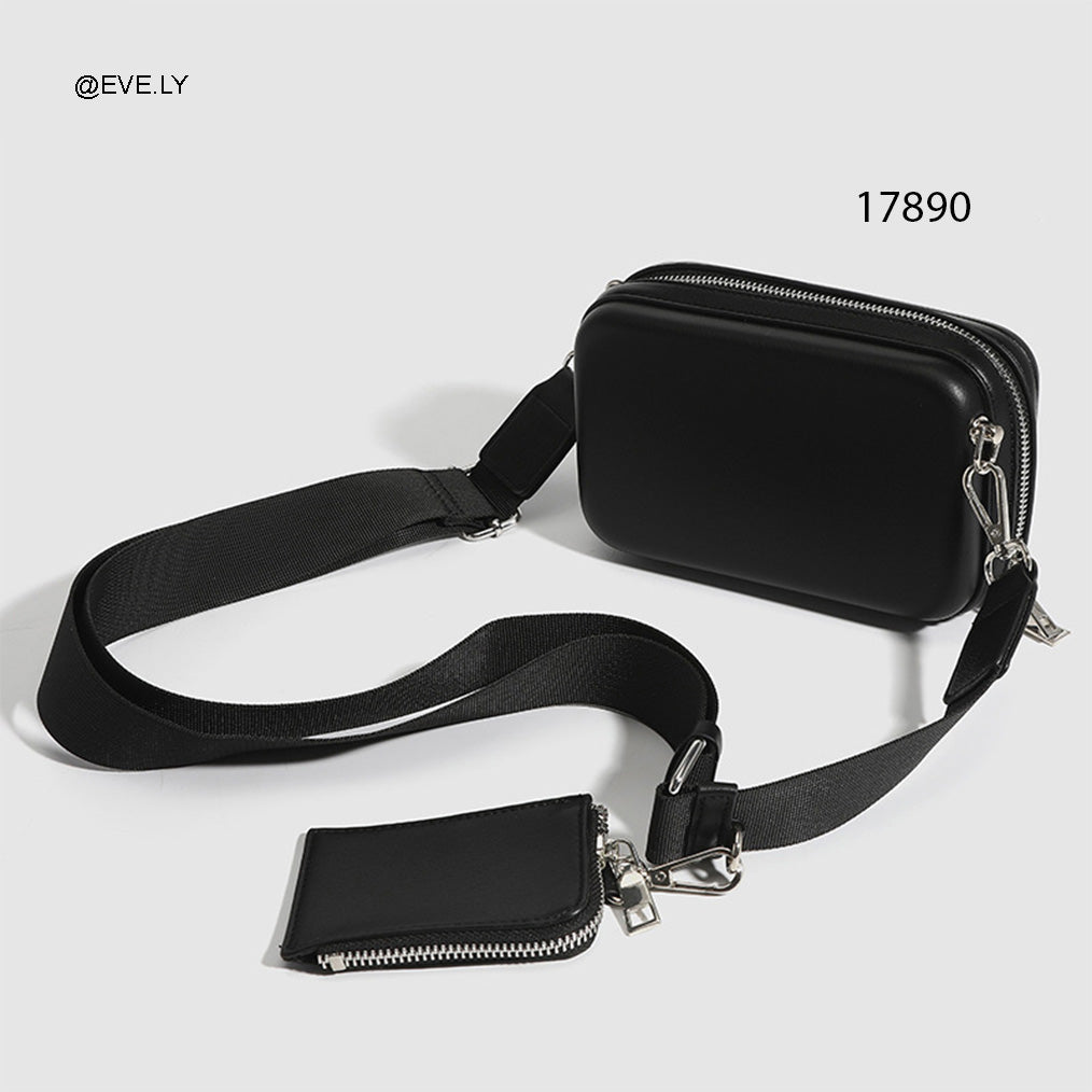 تصميم مستطيل صغير بهيكل شبه صلب يعطي شكل مرتب ويحافظ على تنظيم المحتوى داخل الحقيبة.