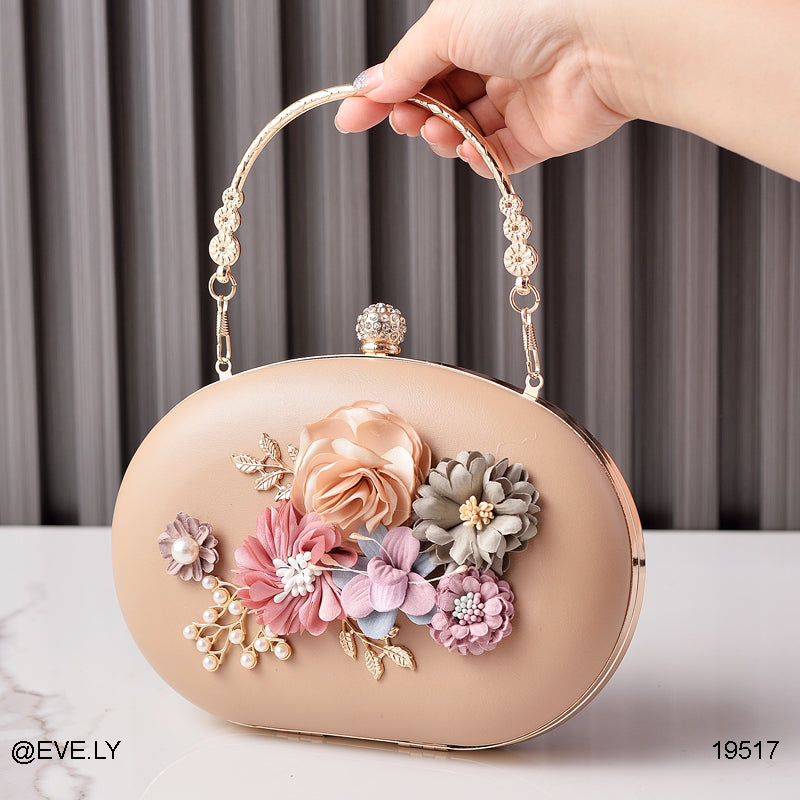 • زينة يدوية بارزة: واجهة الحقيبة مرصعة بتنسيق فني من الزهور الملونة والخرز البراق لتناسب المناسبات السعيدة.