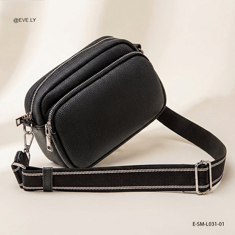 • الحزام العريض: مزودة بحزام قماشي عريض قابل للتعديل والفصل، مما يوفر راحة فائقة للكتف ويضيف لمسة "كاجوال" عصرية.