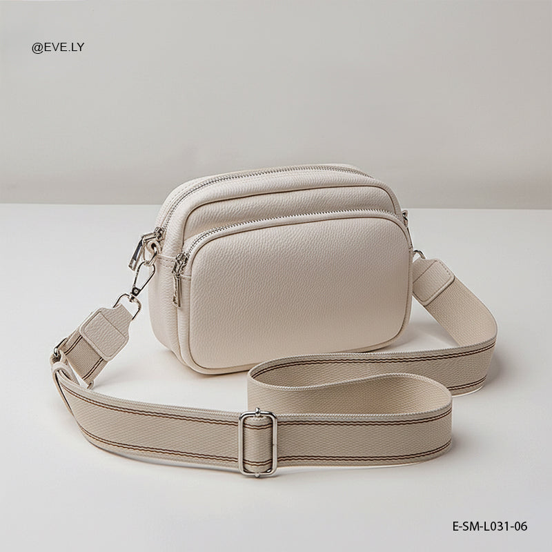 • الحزام العريض: مزودة بحزام قماشي عريض قابل للتعديل والفصل، مما يوفر راحة فائقة للكتف ويضيف لمسة "كاجوال" عصرية.
